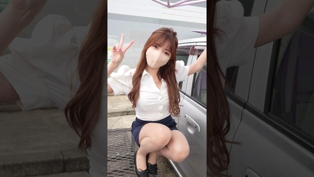 【ぱ♡チラ】軽自動車の洗車で色々見えちゃうOLw